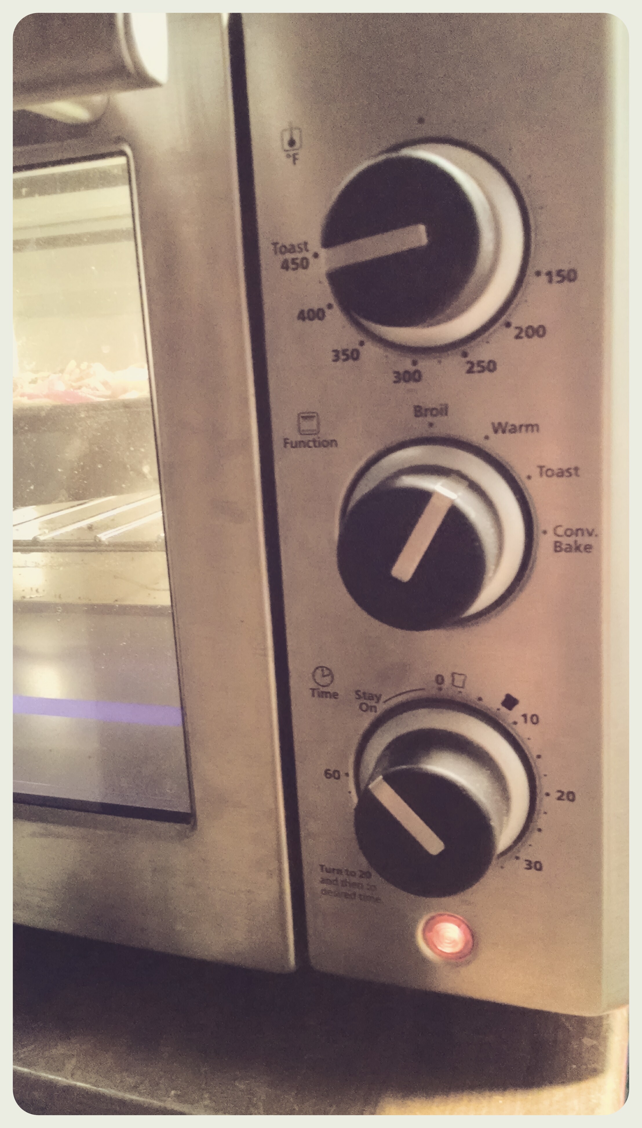 It’s smaller in size but as you can see it has a lot of different options for cooking and a timer which is great. For comparison sake, it would be big enough for one frozen pizza perfectly!